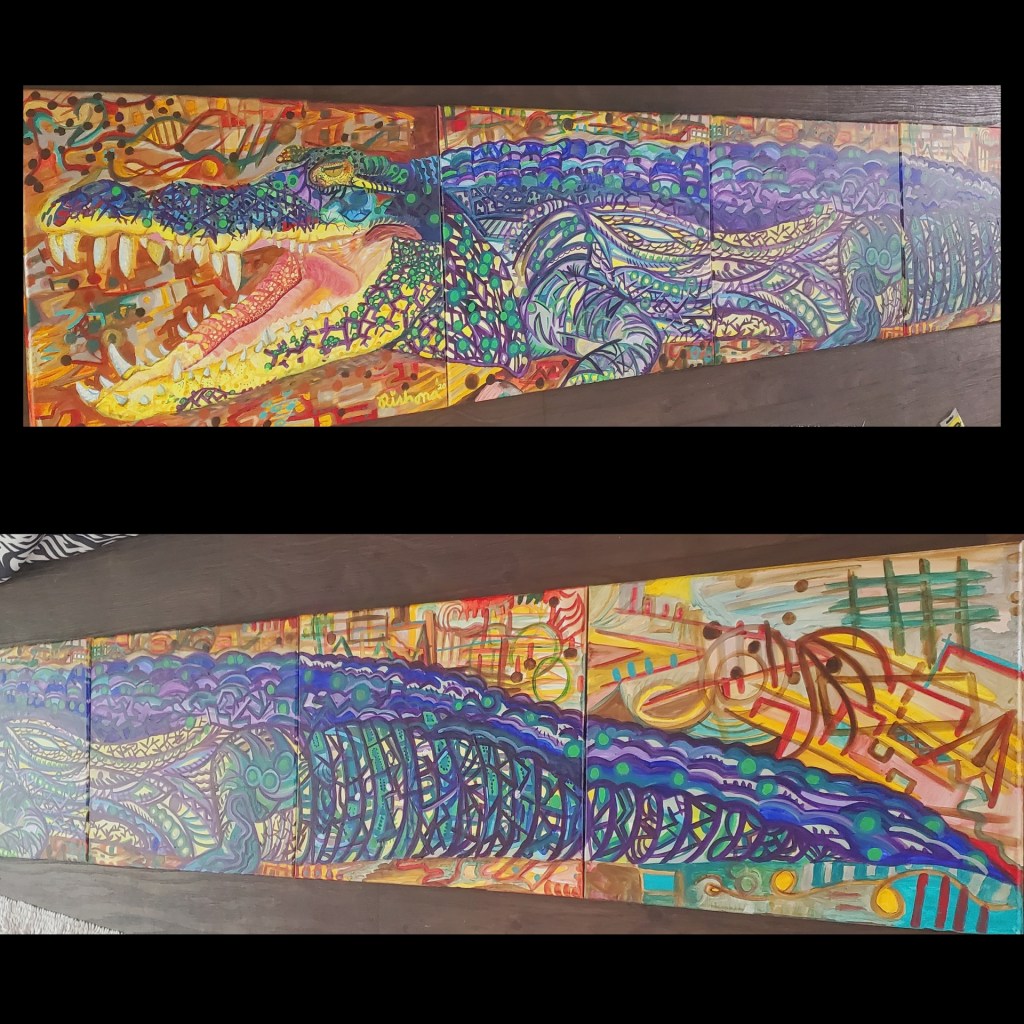 Chompers Original $6,500 Acrylic on canvas 16×100 Limited edition prints available 12×16 $95 each print plus s&h Related